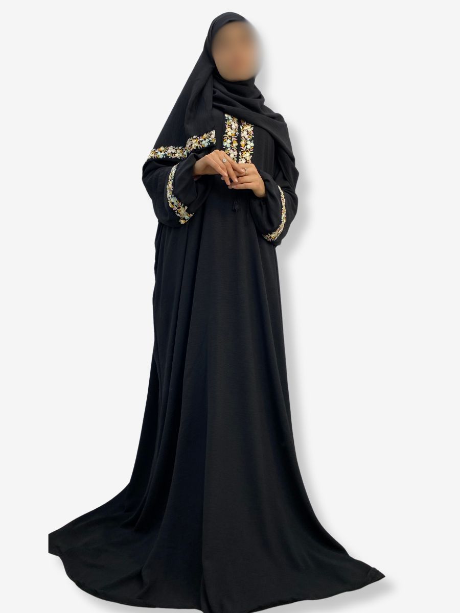 Alliez élégance, confort et praticité avec la robe de prière FATIMA en noir. Conçue pour les femmes recherchant une tenue fluide et modeste, elle est ornée de délicates broderies aux motifs floraux, ajoutant une touche de raffinement et de sophistication.